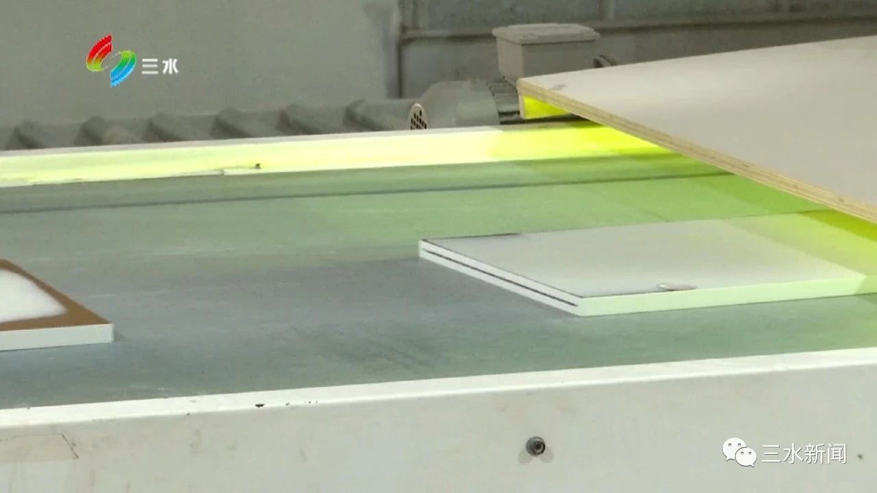 其中這個(gè)UV底線工序,木板底漆的滾涂以及烘干以流水式作業(yè),只需7、8分鐘就出來(lái)一件成品。油漆也由傳統(tǒng)的PE改成UV,不僅工作效率提高,也減少了揮發(fā)性氣體對(duì)人的影響。