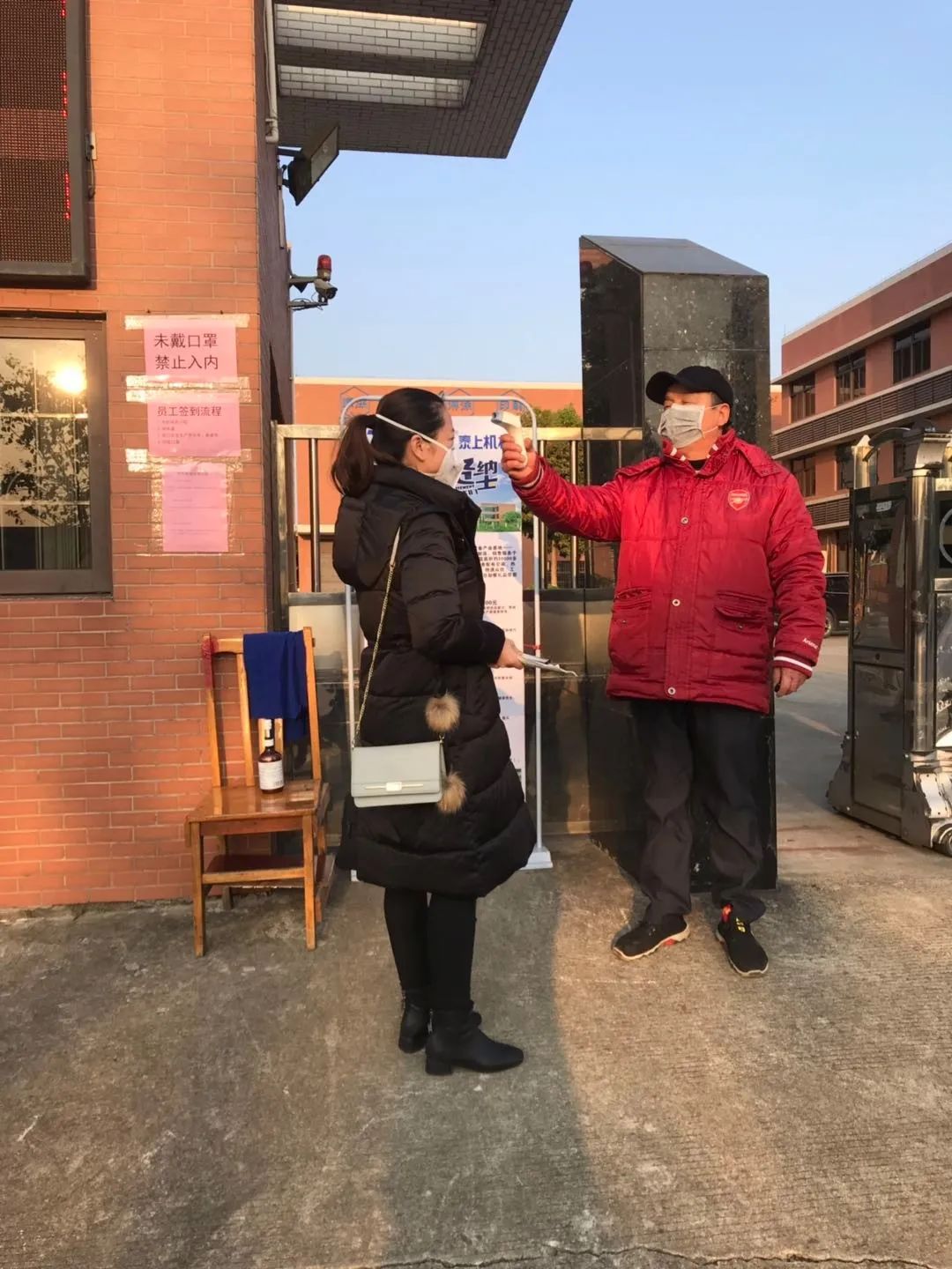 進(jìn)公司報(bào)到前,公司安排指定工作人員逐一給每一位泰上家人測(cè)量體溫,且必須進(jìn)行籍貫、來自城市地址登記,確定無任何隱患者才能進(jìn)入工廠,確保全體員工的安全,如有感冒、咳嗽發(fā)燒者一律嚴(yán)禁入廠,并做好防護(hù)措施引導(dǎo)。